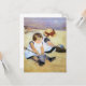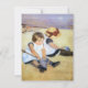 Mary Cassatt Children Playing on the Beach invitations. Oil painting on canvas from 1884. American artist Mary Cassatt was a great woman painter and impressionist. Children Playing on the Beach depicts two cute little girls playing in the sand on the beach with sailboats sailing on the water in the background. Both girls wear cute play dresses and black shoes. One little girl holds a shovel and bucked while the other wears a little sun hat with red ribbon. A cute gift for fans of Mary Cassatt, beach paintings, impressionism, and summer art.