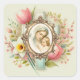 Mary Jesus Floral Cross Religious Spring Square Sticker