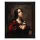 This portrait of Mary Magdalene as her face illuminated by the light of heaven; and shows her with a halo above her head has she looks towards the heavens, holding in her hand what may be an silver incense jar.