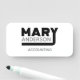 The name Mary with custom last name and job title. Colours can be changed.