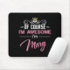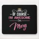 Of Course I'm Awesome I'm Mary -in mixed white casual and pink decorative cursive font lettering with scroll embellishments and topped with a golden crown.
