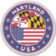 Maryland design with flag of Maryland and flag of United States, rounded shape.