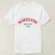 On this shirt, the distressed text in red says MARYLAND in a slight arch, and the black text below says Established 1788.