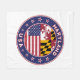 Badge of Maryland with flag of Maryland and flag of USA colours, rounded shape.