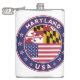 Badge of Maryland with flag of Maryland and flag of USA colours, rounded shape.