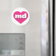 This magnet features a vibrant hot pink heart containing the bold, rounded, white lower case letters md, a playful version of the abbreviation for Maryland, the old line state.