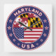Badge of Maryland with flag of Maryland and flag of USA colours, rounded shape.