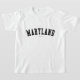 Check out this Maryland t-shirt! Are you from Maryland? Do you have a friend or family member who loves Maryland? If so, this "Banner" t-shirt is exactly the gift that you're looking for! The design features "Maryland" in arched black lettering in the classic College font.