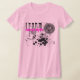 On Front: "Maryz Eyez" name logo with broken speaker image over heart. Both images are printed over paint-splatter designs. On Back: cursive lyrics to ME song "Alive & Well" printed over another paint-splatter design. You choose shirt colour, all light colour apparel available. For more on Maryz Eyez, log onto www.maryzeyez.com