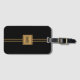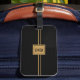 Masculine luggage tag in black with gold stripes and block for your initials. Personalise with your own initials.