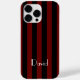 Striped case background in black and dark red with a masculine vibe. Personalise with your/recipient name. Cool.