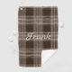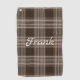 Nice, masculine brown and beige plaid golf towel. Add your name to personalise. Nice gift for him!