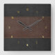 Masculine Brown & Black Stitched Leather Texture Square Wall Clock