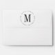 Simple minimalist masculine business professional black monogram on white return address envelopes.