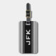 Personalised masculine monogram travel luggage tag. Classic black and grey stripe pattern design with white monogrammed name intitial letters. ie JFK Elegant gift idea for men. Manly colour combination.
