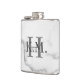 A tone on tone monogram in various shades of grey, decorates this Liquid Courage Flask on a carrara marble background, making it a very cool and masculine gift. It is perfect for the groomsmen in the wedding party, for a boss, father-in-law or your dad. Just add a bottle of his favourite to make it extra special.