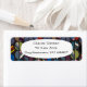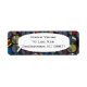 These return address labels have a mid-century modern design of oval halves, some solid and some striped, in masculine colours on a field of dark grey.