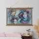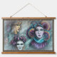 Imagine you're strolling the cobbled streets of Venice, Italy when you come upon a shop of carnival masks. You peer into the glass, trying to take in all the gorgeous fabrics, beads, feathers, and more. You take a deep breath and step inside. Colours of teal blue green, gold, tan, burgundy and purple are displayed on the Masks of Venice Hanging Tapestry Art Print.