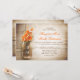 beautiful rustic wedding invitations with distressed wood background and mason jar with orange colour flowers . I suggest a beautiful linen texture paper for this design.