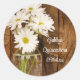Customise these rustic chic Mason Jar and White Daisies Quinceañera Favour Tag Stickers with the personal name of the 15 year old birthday girl and date of her sweet fifteen b-day. These casual yet classy custom ranch theme adhesive party favour tags feature a charming digitally enhanced floral photograph of a glass canning jar filled with white daisy flower blossoms and a brown weathered barn wood background.