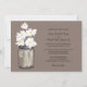 Perfect for a country style wedding or maybe you just love Mason Jars! Old vintage Mason Jar filled with white daisies against a Brown background. If you have any questions on this design or want a colour change please email me paula@labellarue.com Also check for the RSVP, RECEPTION and GUEST SEATING Cards to match!