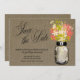 Mason Jar Save the Date: Perfect for a country style wedding or maybe you just love Mason Jars! Old vintage Mason Jar with shades of Cream, Salmon / Coral, and Dark Lime / Chartreuse wildflowers. A Dark Burlap Background is set. If you have any questions on this design or want a colour change please email me paula@labellarue.com PICK YOUR PAPER CHOICE: This is set to print on Basic however you can pick an alternate cardstock.