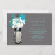 Perfect for a country style wedding or maybe you just love Mason Jars! Mason Jar hanging on a hook filled with country wildflowers. A Cool Charcoal Grey background against the hanging Mason Jar and wildflowers in colours of aqua and white daisies. If you have any questions on this design or want a colour change please email me paula@labellarue.com Also check for the RSVP, RECEPTION and GUEST SEATING Cards to match!