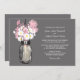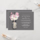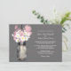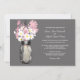 Perfect for a country style wedding or maybe you just love Mason Jars! Mason Jar hanging on a hook filled with country wildflowers. A Cool Charcoal Grey background against the hanging Mason Jar and wildflowers in colours of pink and white daisies. If you have any questions on this design or want a colour change please email me paula@labellarue.com Also check for the RSVP, RECEPTION and GUEST SEATING Cards to match!