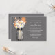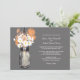 Perfect for a country style wedding or maybe you just love Mason Jars! Mason Jar hanging on a hook filled with country wildflowers. A Cool Charcoal Grey background against the hanging Mason Jar and wildflowers in colours of orange and white daisies. If you have any questions on this design or want a colour change please email me paula@labellarue.com Also check for the RSVP, RECEPTION and GUEST SEATING Cards to match!