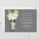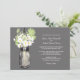 Perfect for a country style wedding or maybe you just love Mason Jars! Mason Jar hanging on a hook filled with country wildflowers. A Cool Charcoal Grey background against the hanging Mason Jar and wildflowers in colours of light green and white daisies. If you have any questions on this design or want a colour change please email me paula@labellarue.com Also check for the RSVP, RECEPTION and GUEST SEATING Cards to match!