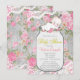 Adorable girls vintage rose mason jar with pink flowers and lace baby shower invitation. This sweet girl mason jar baby shower invitation is easily customised for your event by adding your details in the font style and colour, and wording of your choice.