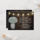 Mason Jar Baby's Breath Bridal Shower Invitations - design features a barn wood background with string lights at the top with a bouquet of Baby's breath inside a mason jar with the word love printed in an elegant font.