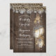 Firefly lights mason jar, wood, and lace rustic wedding invitations
