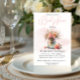 This bridal shower invitation features a soft, romantic aesthetic with a watercolor-style background and a delicate bouquet of pink and peach florals arranged in a mason jar tied with a ribbon. The design blends elegance with rustic charm, perfect for a heartfelt celebration. The text layout uses a graceful mix of fonts: flowing cursive for the event title and honoree’s name, paired with classic serif typefaces for the details, creating a balanced and refined visual hierarchy. The overall composition feels warm, celebratory, and thoughtfully composed.