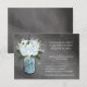 FROM MASON JAR SWEETNESS WEDDING COLLECTION: An Elegant Mason Jar filled with flowers in colours of Blue and Sage Blue Hydrangea flowers with White Daisies wildflowers. A CHALKBOARD Background is set. If you have any questions on this design or want a colour change please email me paula@labellarue.com Also check for the Wedding Suite, INVITATION, RSVP, RECEPTION and GUEST SEATING Cards to match! Make sure to pick your favourite cardstock to have it printed on.
