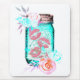 A mason jar full of butterfly kisses and adorned with flowers. A cute and sweet design. In colours of teal , pink and white. AN elegant, rustic, country design.
