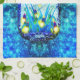 Mason jar lightning bug glowing firefly blue yello tea towel