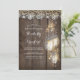 Firefly lights mason jar, wood, and lace rustic birthday party invitations
