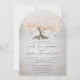 Mason Jar Peachy Pink Heart Leaf Tree Wedding Invitation