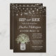 Design features a country rustic watercolor wood grain background with elegant fairy twinkle string lights. Template also features a mason jar filled with baby's breath flowers. You can change the demo initials on the jar to your very own.