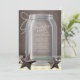 Rustic and beautiful Southern country ladies birthday party invitations featuring an illustration of a mason jar with twine tied around the neck of it, rustic Texas stars laying at the foot of the jar, a white & yellow gingham table top, over a vintage brown background.