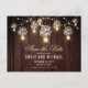 Rustic lace , string lights and mason jar with baby's breath flowers on elegant wood background monogram wedding save the date card for summer, fall, spring or winter wedding! Perfect design for the country / modern wedding