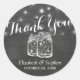 Wedding Favour Thank You Sticker Template - Elegant Mason Jar & Vintage String Lights with Grunge Black Chalkboard Background.