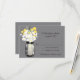 Reply Card -- Perfect for a country style wedding or maybe you just love Mason Jars! Mason Jar hanging on a hook filled with country wildflowers. A GRAY background with the hanging Mason Jar with yellow Billy Balls and wild white daisies. If you have any questions on this design or want a colour change please email me paula@labellarue.com Also check for the MAIN INVITE, RECEPTION and GUEST SEATING Cards to match!