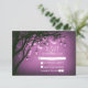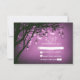 Charming rustic country wedding reply cards with old vintage tree fireflies mason jars and string lights - purple colour design