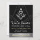 Category: personalised party invitations and templates for freemasons. Colour theme: metallic silver and black.