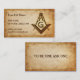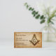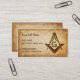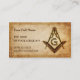 A masonic business card template on an old worn rustic parchment paper background texture. These freemason business cards are designed with a "burned in" square and compass logo of masonry for an ancient vintage appeal. Personalise this professional business card with your own info and enjoy passing them out at lodge and networking events. Matching vintage style invitations can be found in the same masonic collection. Category: custom business card templates for freemasons. Colours: dark brown, gold, tan and black.