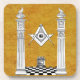 For sale is a masonic drink coaster featuring numerous masonic symbols, including: the pillars, chequered pavement, alter, and the square and compasses surrounded by rays of glory.
