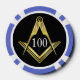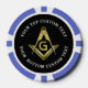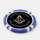 Would you like to create your own custom masonic poker chips that coordinate well with personalised freemason playing cards? Here's a quality gold square and compass poker chip template easily editable by you to make your own poker chips! Include your lodge name or other custom text - even the dollar amount on the back! While the example shown indicates a blue and white masonic poker chip with a black background, the colour combinations are numerous if you further customise the design. Other great ideas for the freemason poker chip template include putting your own personalised message on the backside for things such as short messages, "free drink" or something else that may be memorable for your guests. Colours: blue and white; black and gold.