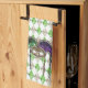 16” x 24” kitchen towel with an image, on both ends, of a beautiful purple, green, and gold masque une paillette (sequin mask) with long coordinating ribbons on a background of diamond-shaped emeralds and gold citrines arranged in an argyle pattern. See matching cloth napkin, paper cocktail napkin, cloth placemat, paper placemat and coasters. See the entire Mardi Gras Kitchen Towel collection in the FOOD/BEV | Linens section.
